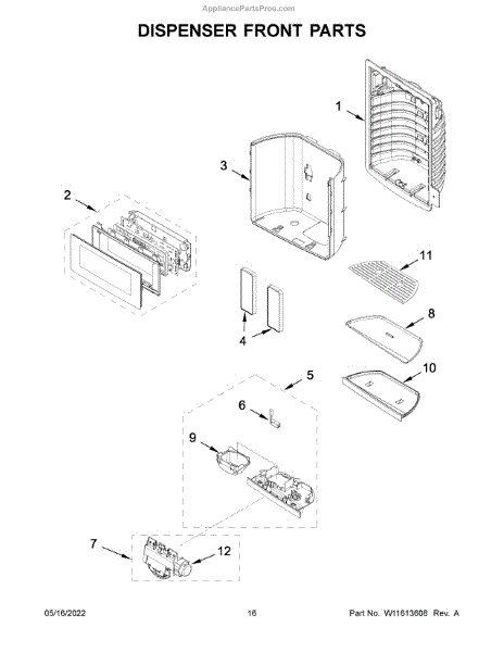 Parts for Kitchenaid KRFF507HPS04: Dispenser Front Parts