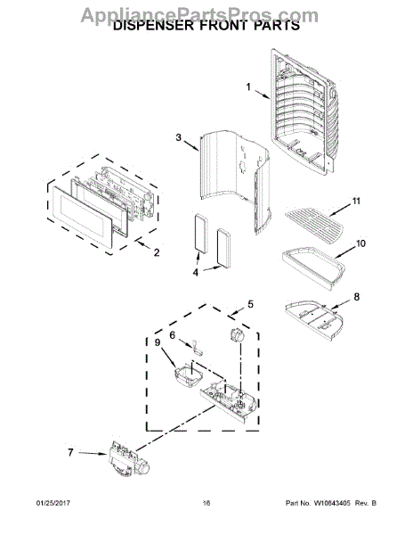 This refrigerator ice guide channels cubes and crushed ice along the intended path so they land in your bin or glass. When the guide is damaged or missing, ice can scatter, jam, or miss the dispenser opening. What it does