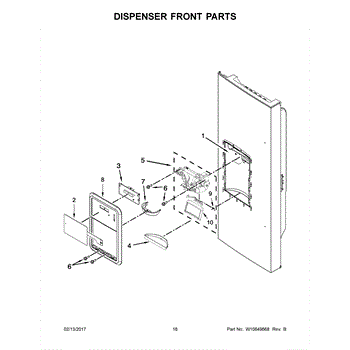 The Dispenser Drip Tray is an OEM part for Whirlpool refrigerators that have an internal dispenser. Located beneath the dispenser area, it collects any excess water, moisture, or spilled liquids during manual or automatic dispensing of ice and water.