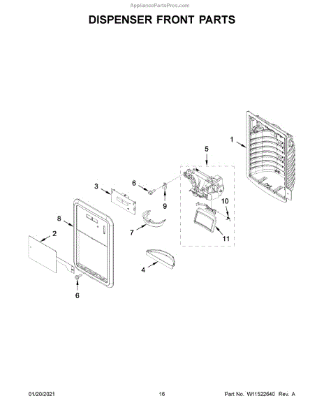 Parts for Whirlpool WRF550CDHZ04: Dispenser Front Parts