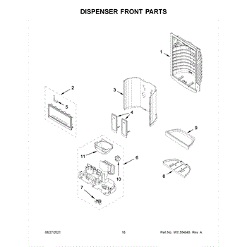 This dispenser separator assembly forms the interior of the refrigerator's ice/water dispensing area. It guides ice and water into your glass and helps seal the chute to limit warm air intrusion, drips, and frost at the opening.