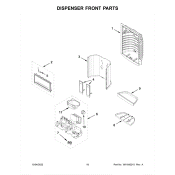This dispenser separator assembly forms the interior of the refrigerator's ice/water dispensing area. It guides ice and water into your glass and helps seal the chute to limit warm air intrusion, drips, and frost at the opening.