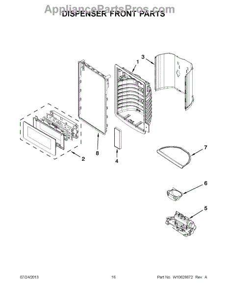 The Dispenser Actuator Pad is an OEM part for Whirlpool refrigerators. It is designed to fit seamlessly beneath the dispenser control panel and detect when buttons are pressed. When activated, the dispenser actuator pad communicates with the refrigerator's electronic board to dispense water, ice, and crushed ice through the integrated dispenser function.