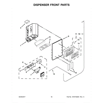 This lighted dispenser actuator pad assembly replaces the extra-large paddle you press to dispense water or ice from the door. It restores smooth, reliable activation and visibility when the original pad is cracked, worn, or unresponsive.