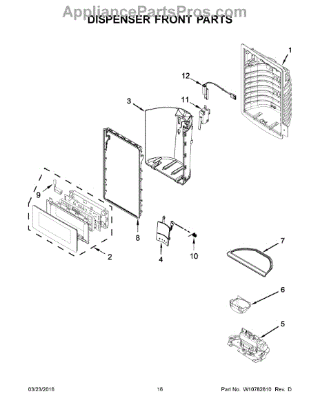 Fix a non-working water dispenser with this refrigerator switch. Controls water flow activation when pressed. Simple DIY repair for bottom-mount models.