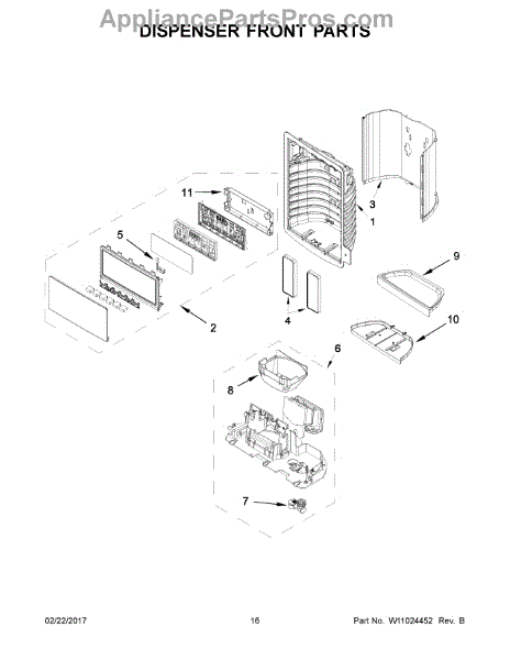 This part is a replacement for a damaged refrigerator dispenser control board. This touch-enabled control board allows the user to choose different functions for the dispenser, including varying types of ice, light, temperature readings, and to fill glasses with water. The dispenser control board can fail due to corrosion of electrical contacts.If the dispenser control board fails, users will be unable to dispense ice or water, or adjust the light (or some variation of these). Replacing the board is relatively simple. First, disconnect the power to the refrigerator. Then, using a flathead screwdriver, pry the bottom two tabs up and pull out gently, then pull downward to release the upper five tabs. Disconnect the wire connector and connect it to the new one. Install the new control board by reversing the previous steps.This is a genuine OEM part. It is made by Whirlpool and sold individually. It is compatible with Whirlpool refrigerators only.