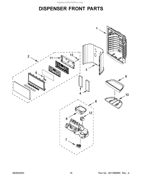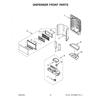 This dispenser separator assembly forms the interior of the refrigerator's ice/water dispensing area. It guides ice and water into your glass and helps seal the chute to limit warm air intrusion, drips, and frost at the opening.