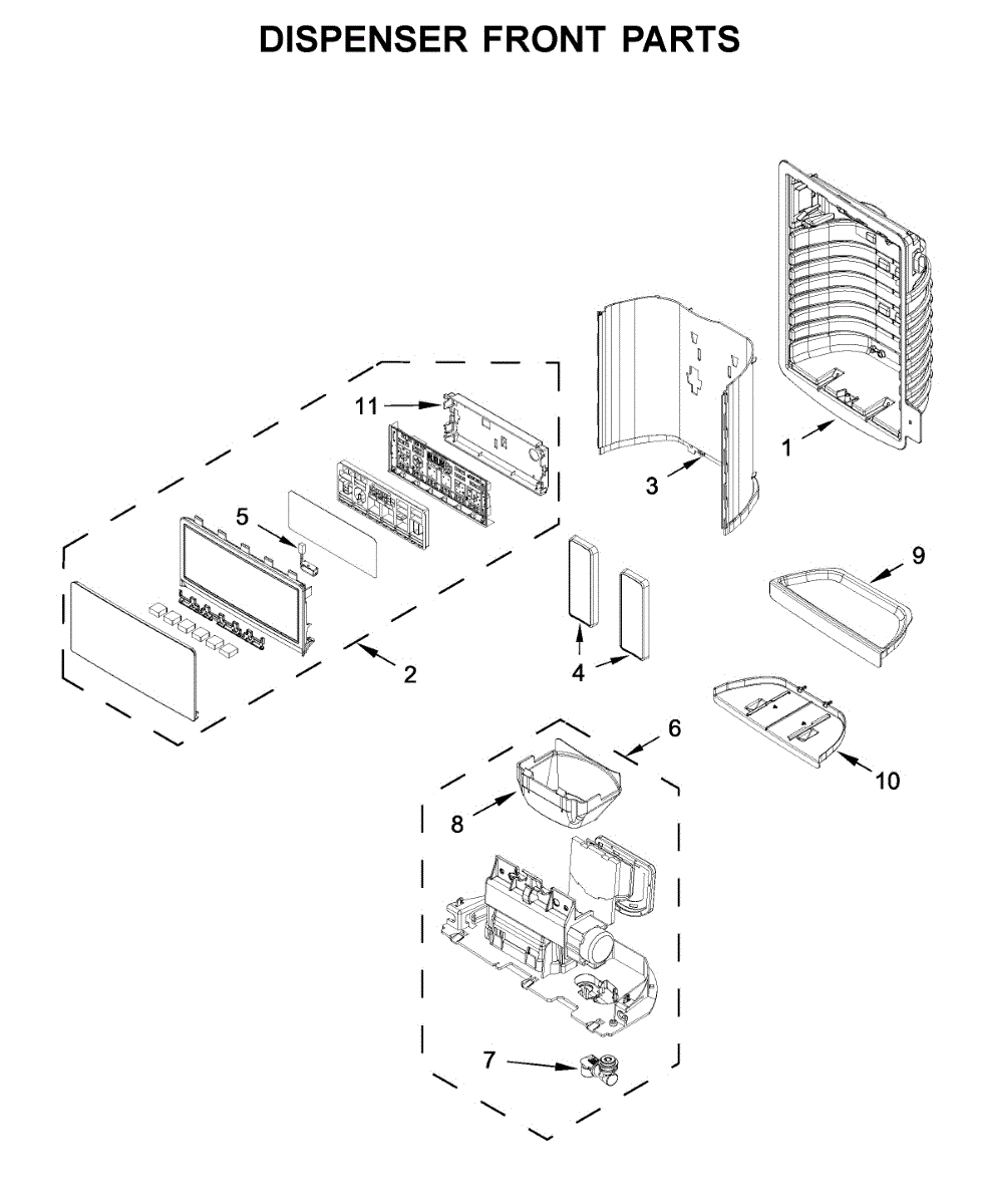 Catches drips and splashes in the dispenser recess of your refrigerator door. Replace if cracked, stained, or missing to keep the front panel clean.