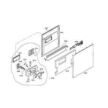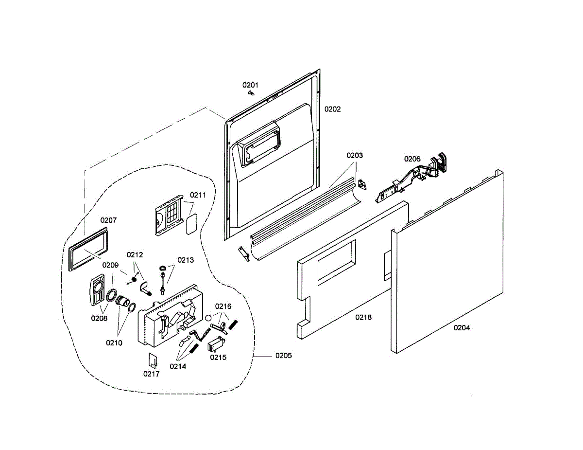 Parts for Bosch SHU43C02UC/17: Dispenser / Inner Door / Outer Door Parts