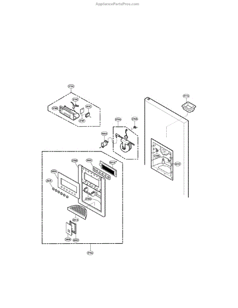 The Ice Chute Door is an OEM part for LG refrigerators. It is located in the ice dispenser area on the front of the refrigerator. It opens and closes automatically when ice is dispensed, ensuring a controlled release of ice cubes or crushed ice into the user's glass or container. The door helps to prevent frost buildup, maintain proper insulation, and protect the ice inside the dispenser.
