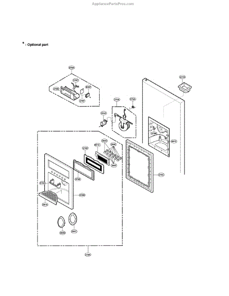 The Ice Chute Door is an OEM part for LG refrigerators. It is located in the ice dispenser area on the front of the refrigerator. It opens and closes automatically when ice is dispensed, ensuring a controlled release of ice cubes or crushed ice into the user's glass or container. The door helps to prevent frost buildup, maintain proper insulation, and protect the ice inside the dispenser.