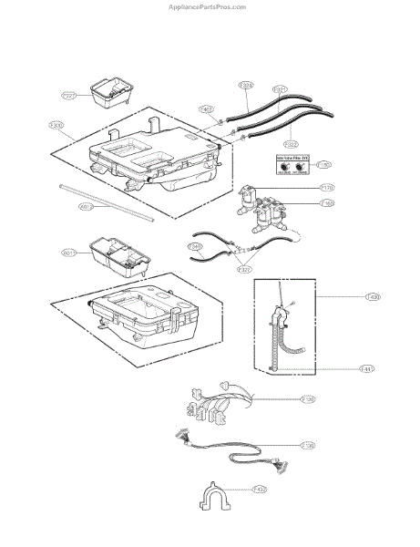 The Water Inlet Valve Assembly is an OEM replacement part for LG washing machines. This critical component regulates the flow of water into the washing machine tub, ensuring the proper water supply for various wash cycles and functions.