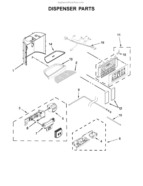 The Dispenser Actuator is an OEM part for Whirlpool refrigerators. It is responsible for controlling and actuating the dispensing of water and ice from the refrigerator door. The dispenser actuator contains electronic components that sense when a cup is placed in the dispenser area and signal the water and ice systems to operate.