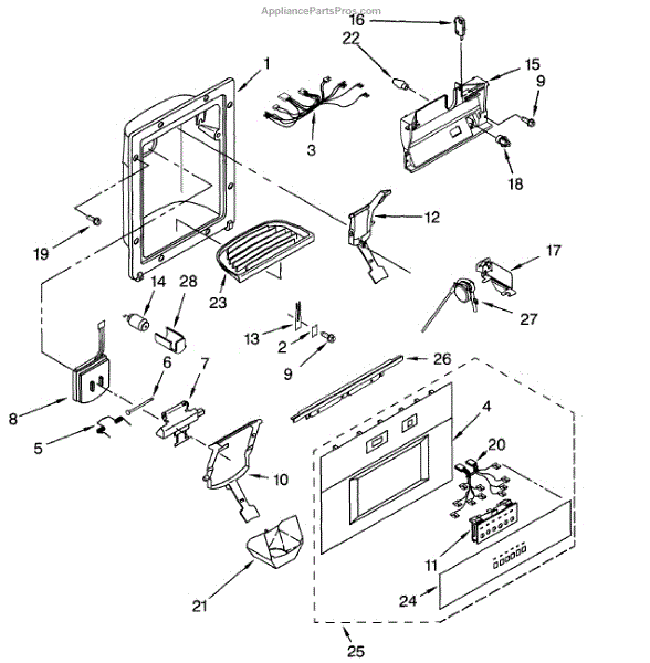 Control bracket secures switches and components in your refrigerator door dispenser panel. Replace if cracked, broken, or switch pins are damaged.