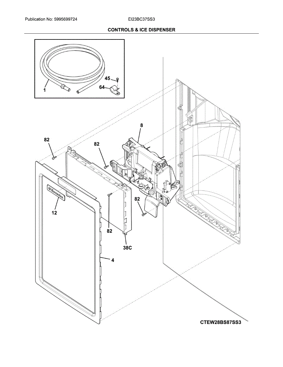 Connects dispenser controls and components in the refrigerator door. Replace if the wiring is damaged, frayed, or causing intermittent dispenser operation.