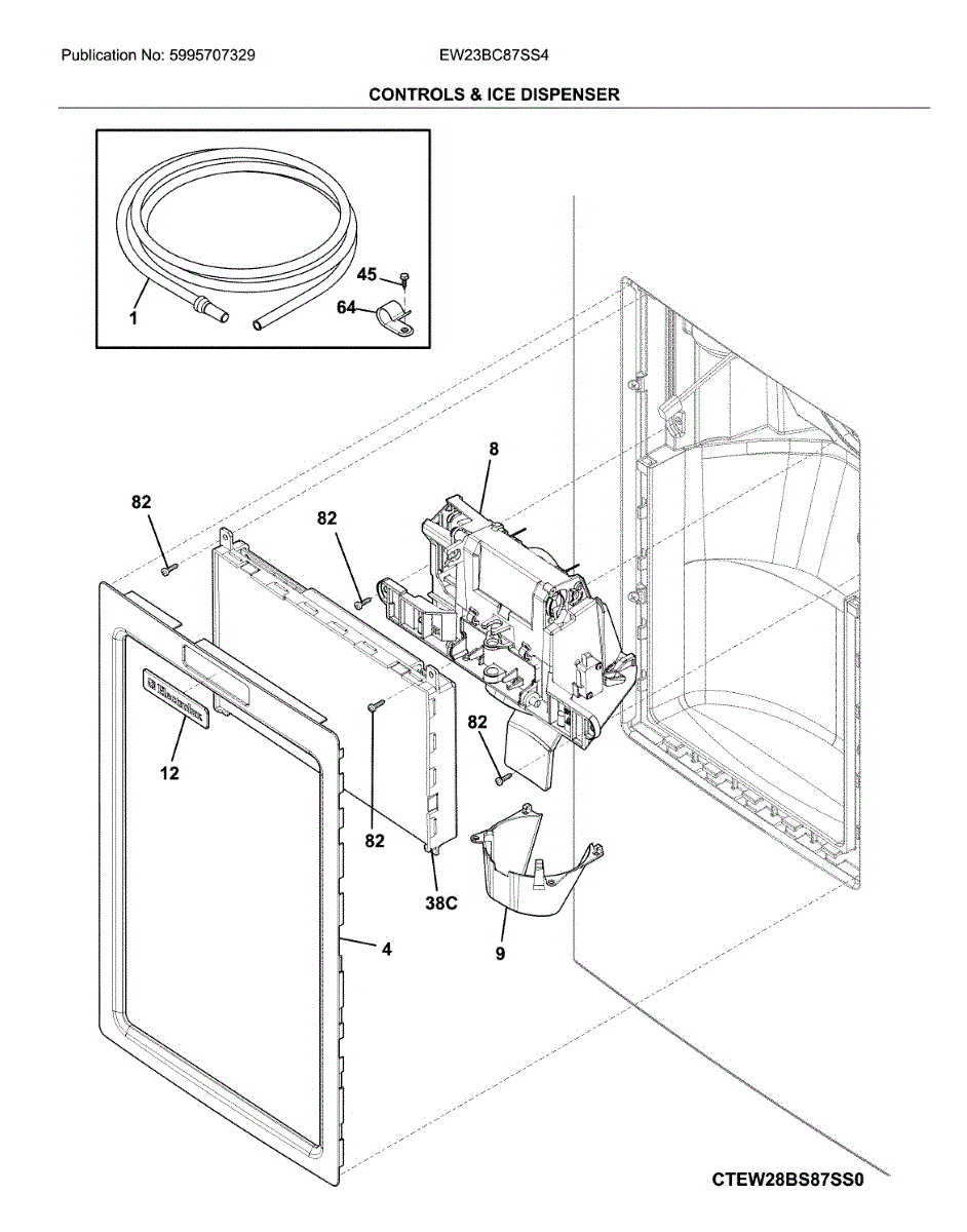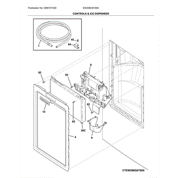Connects dispenser controls and components in the refrigerator door. Replace if the wiring is damaged, frayed, or causing intermittent dispenser operation.