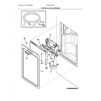 This dispenser wiring harness connects the dispenser controls and components in the refrigerator door, restoring electrical continuity for the dispenser functions and simplifying replacement of a damaged or faulty harness. What it does: