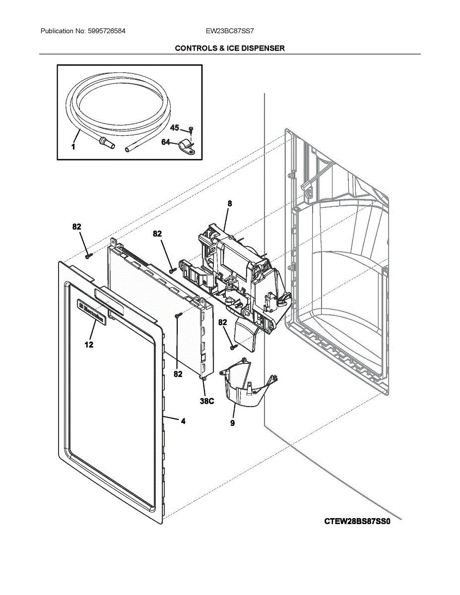 Connects dispenser controls and components in the refrigerator door. Replace if the wiring is damaged, frayed, or causing intermittent dispenser operation.