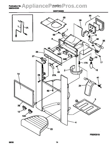 Fixes ice buildup around water dispenser spout. This throat heater prevents freezing in the dispenser area. Moderate DIY repair, 30-45 minutes.