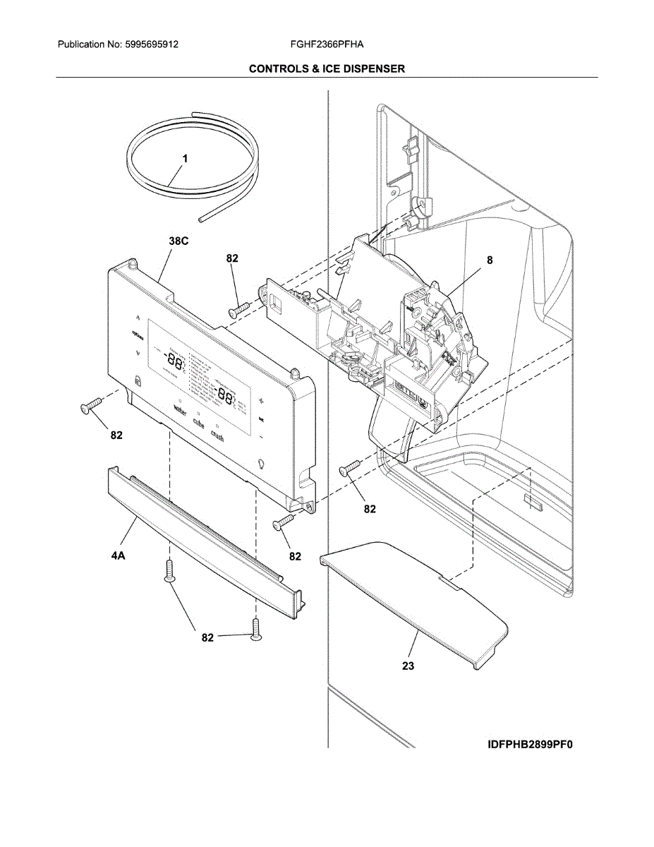Connects dispenser controls and components in the refrigerator door. Replace if the wiring is damaged, frayed, or causing intermittent dispenser operation.