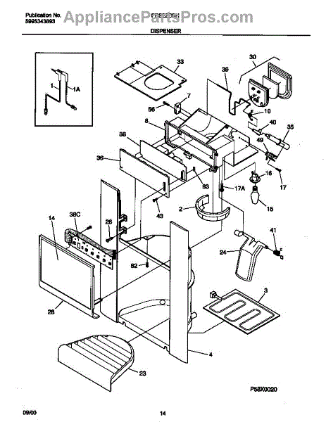 Fixes ice buildup around water dispenser spout. This throat heater prevents freezing in the dispenser area. Moderate DIY repair, 30-45 minutes.