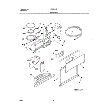 The Dispenser Cover is an OEM replacement part for Frigidaire side-by-side refrigerator models. Located on the refrigerator door, it provides external closure over the built-in dispenser features.