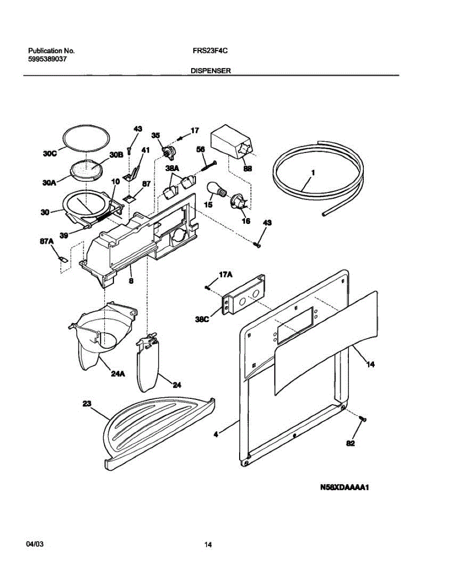 Parts for Frigidaire FRS23F4CW0: 15 - Dispenser Parts