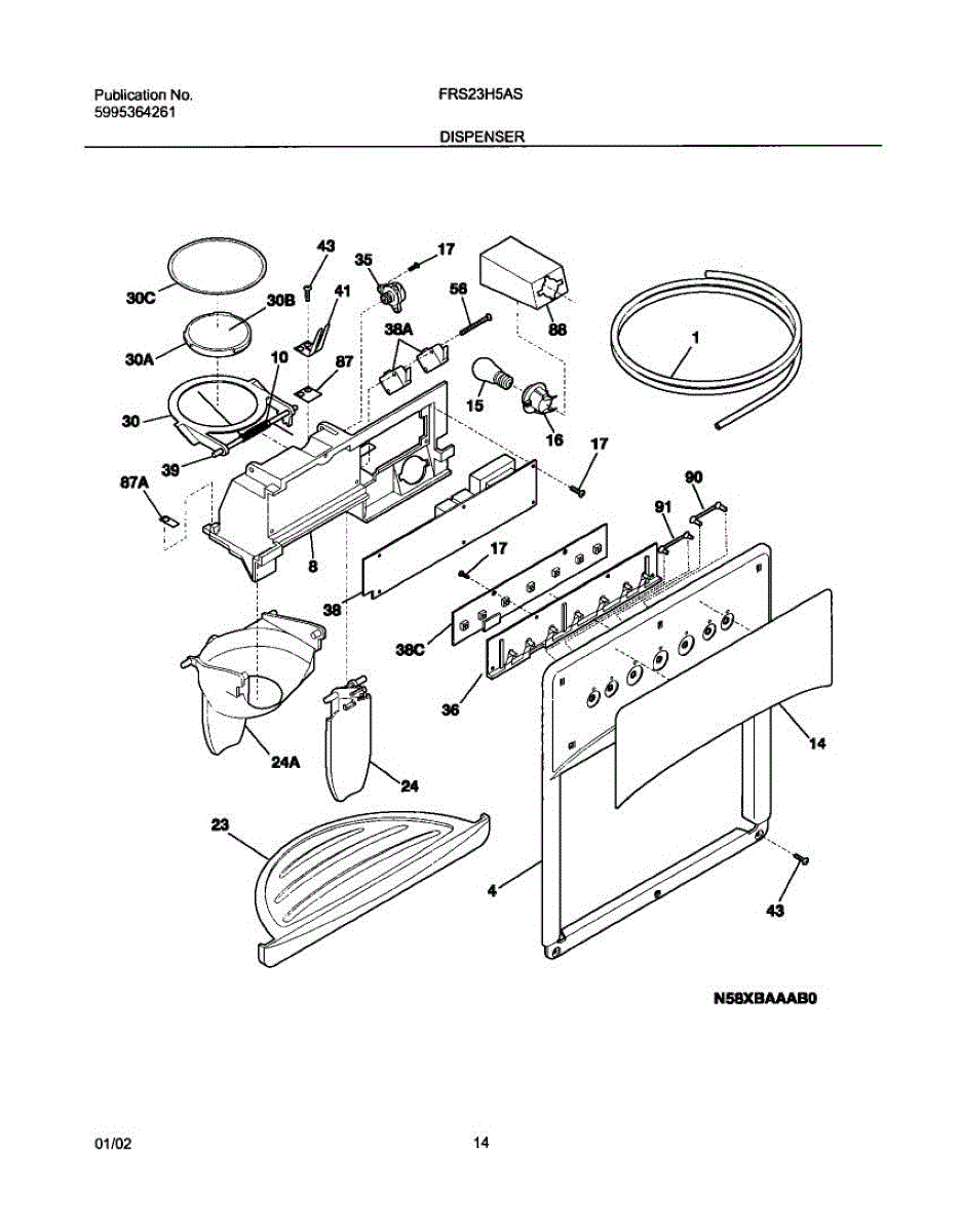 Parts for Frigidaire FRS23H5ASB1: 15 - Dispenser Parts