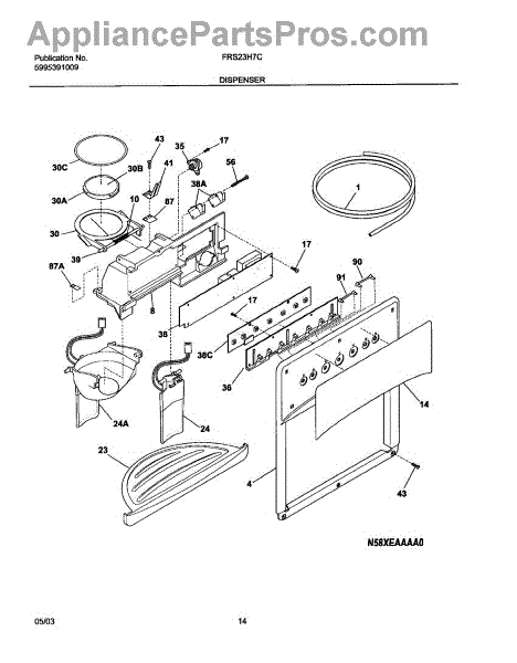 The Dispenser Switch is an OEM replacement part for Frigidaire refrigerators. It is a component that controls the operation of the water and ice dispenser, allowing users to conveniently access chilled water, cubed ice, or crushed ice from the refrigerator door.
