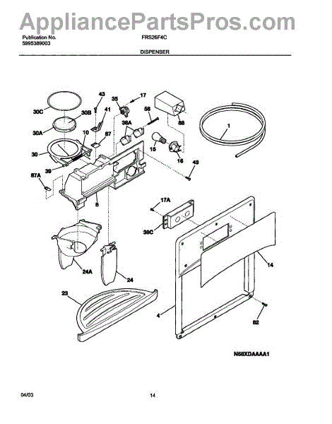 The Ice Chute Door Insulation is an OEM replacement part for Frigidaire refrigerators. It is installed on the ice chute door to prevent warm air infiltration and moisture buildup around the ice dispenser. Causes may include compression or cracking of insulating foam/material from normal use stress. Spills exposing it to liquid are also damaging. Symptoms of defective insulation consist of: