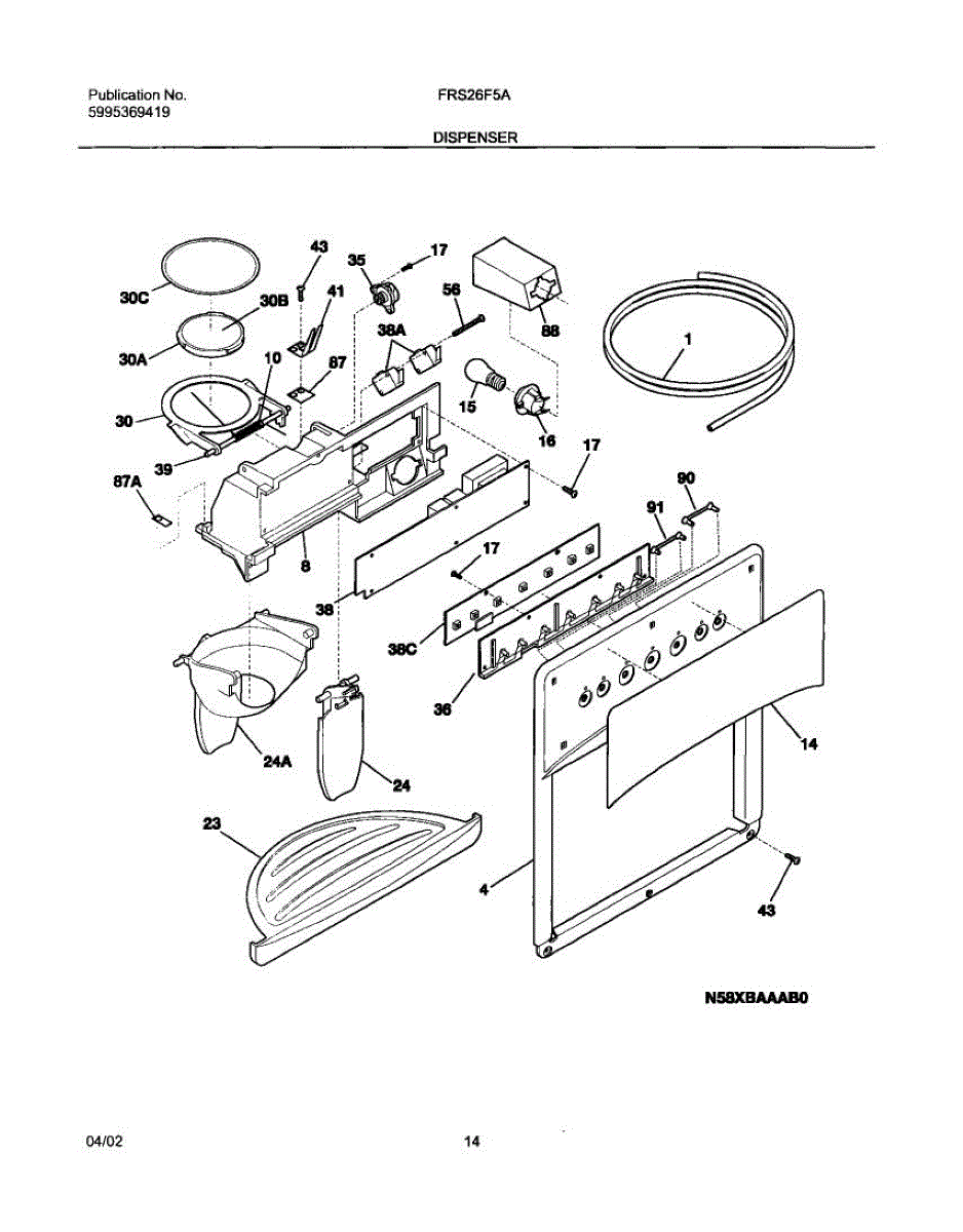 Parts for Frigidaire FRS26F5AQ3: 15 - Dispenser Parts