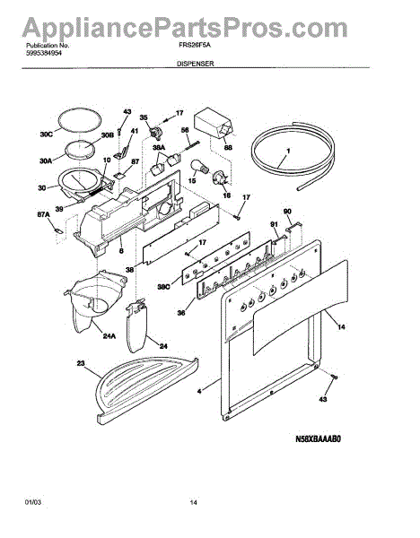 The Ice Chute Door Insulation is an OEM replacement part for Frigidaire refrigerators. It is installed on the ice chute door to prevent warm air infiltration and moisture buildup around the ice dispenser. Causes may include compression or cracking of insulating foam/material from normal use stress. Spills exposing it to liquid are also damaging. Symptoms of defective insulation consist of: