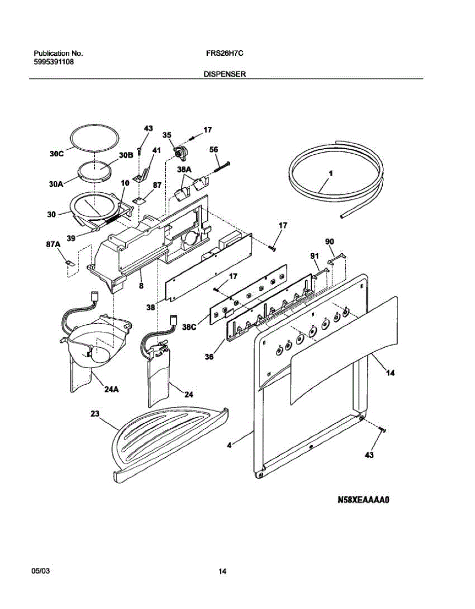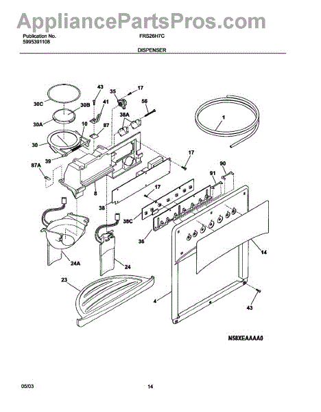 Parts for Frigidaire FRS26H7CW0: 15 - Dispenser Parts