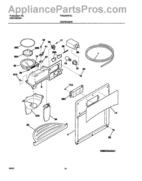 The Dispenser Cover is an OEM replacement part for Frigidaire side-by-side refrigerator models. Located on the refrigerator door, it provides external closure over the built-in dispenser features.
