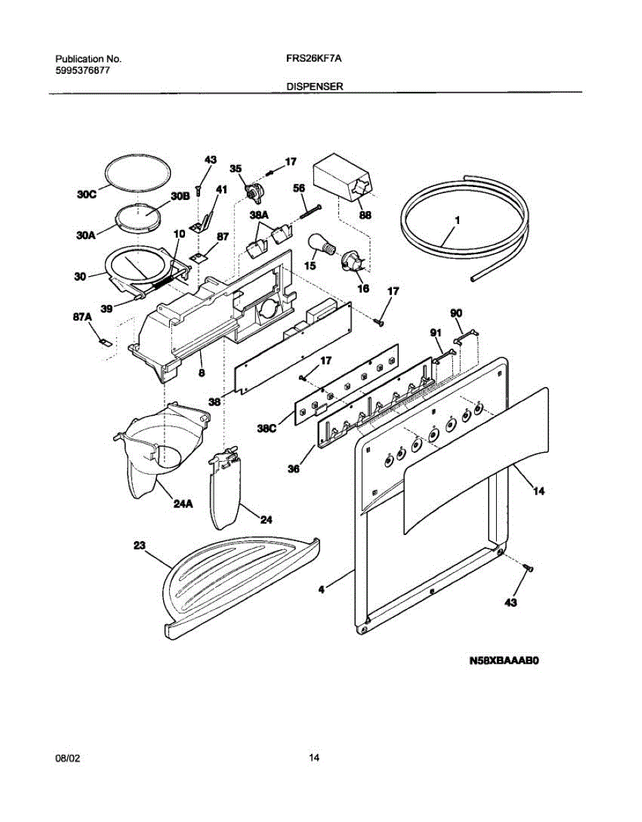 Parts for Frigidaire FRS26KF7AW5: 15 - Dispenser Parts