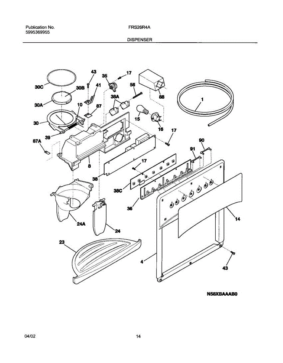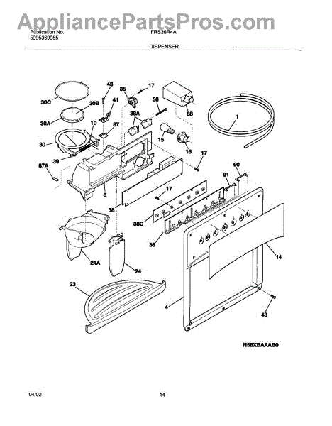 Parts for Frigidaire FRS26R4AQ4: 15 - Dispenser Parts