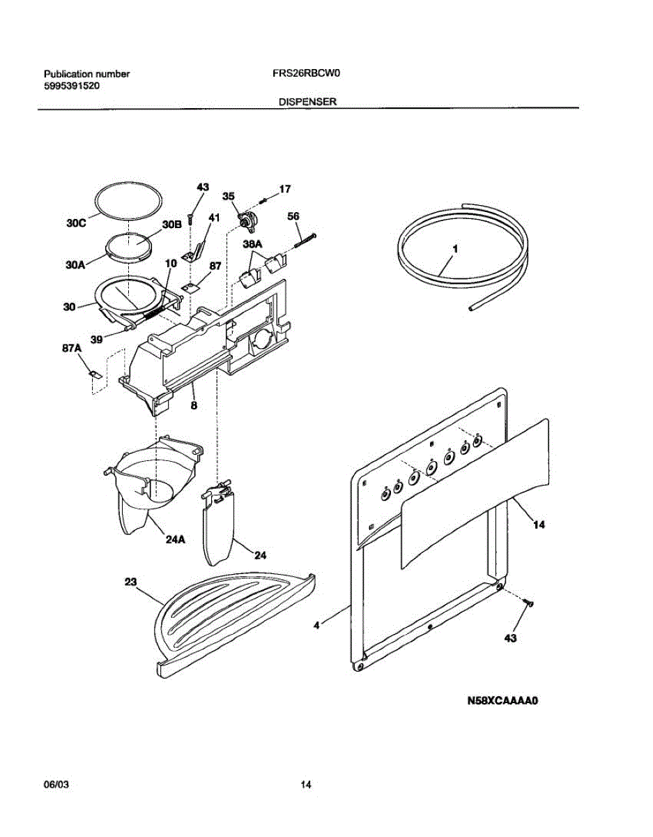 The Dispenser Lever is an OEM replacement part for Frigidaire refrigerators. This lever is a critical component of the refrigerator's water and ice dispenser system, located on the unit's exterior. It is designed to engage the dispenser when pressed, allowing for the seamless release of ice or water.