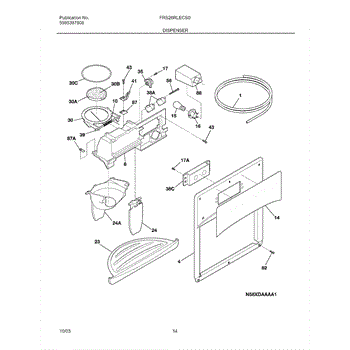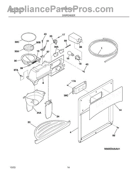 The Dispenser Cover is an OEM replacement part for Frigidaire side-by-side refrigerator models. Located on the refrigerator door, it provides external closure over the built-in dispenser features.