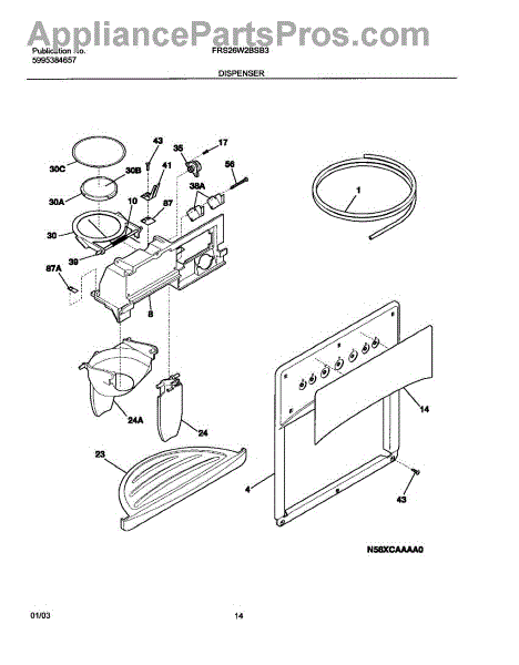 Parts for Frigidaire FRS26W2BSB3: 15 - Dispenser Parts