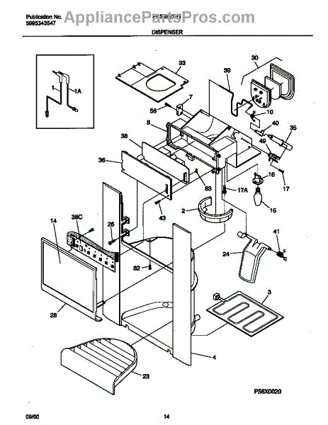 Fixes ice buildup around water dispenser spout. This throat heater prevents freezing in the dispenser area. Moderate DIY repair, 30-45 minutes.