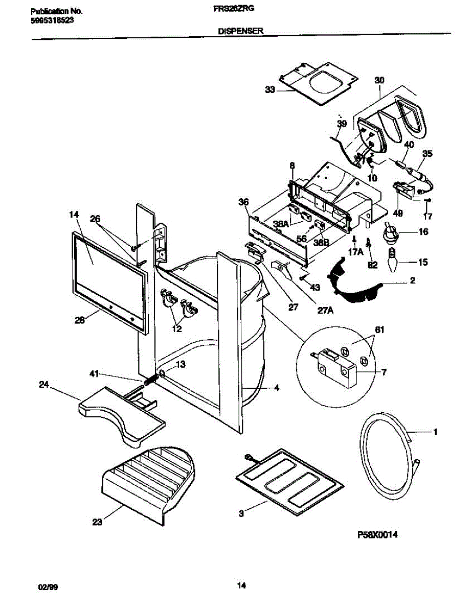 Fixes ice buildup around water dispenser spout. This throat heater prevents freezing in the dispenser area. Moderate DIY repair, 30-45 minutes.