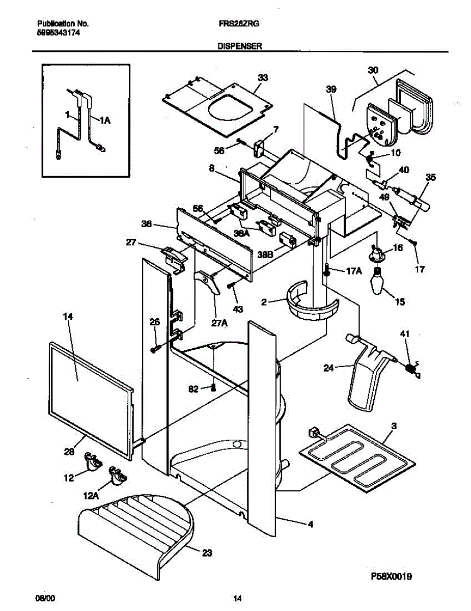 Fixes ice buildup around water dispenser spout. This throat heater prevents freezing in the dispenser area. Moderate DIY repair, 30-45 minutes.