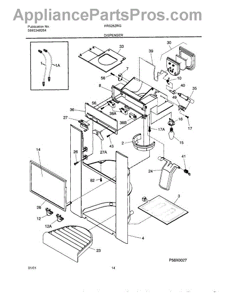 Fixes ice buildup around water dispenser spout. This throat heater prevents freezing in the dispenser area. Moderate DIY repair, 30-45 minutes.