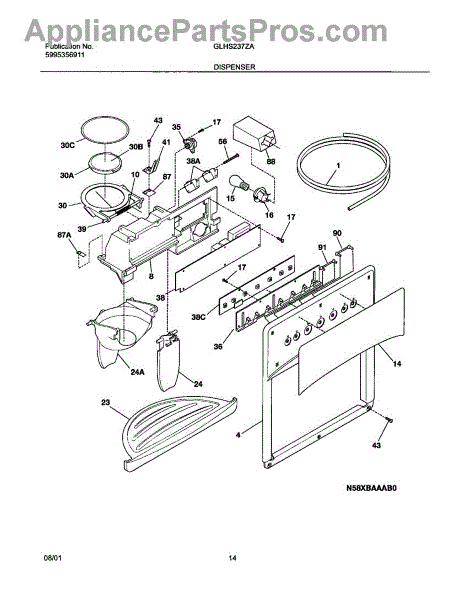 Parts for Frigidaire GLHS237ZAB1: 15 - Dispenser Parts