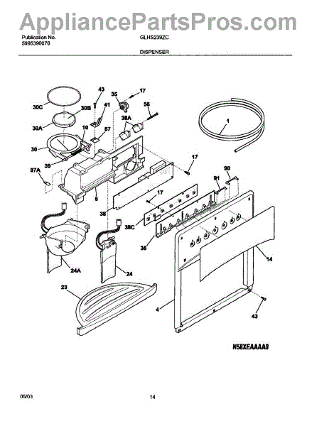 The Ice Chute Door Insulation is an OEM replacement part for Frigidaire refrigerators. It is installed on the ice chute door to prevent warm air infiltration and moisture buildup around the ice dispenser. Causes may include compression or cracking of insulating foam/material from normal use stress. Spills exposing it to liquid are also damaging. Symptoms of defective insulation consist of: