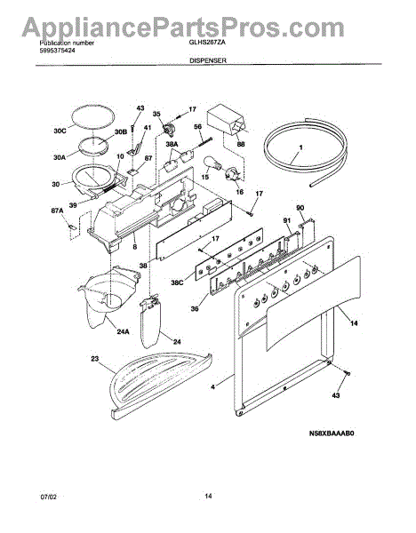 The Dispenser Switch is an OEM replacement part for Frigidaire refrigerators. It is a component that controls the operation of the water and ice dispenser, allowing users to conveniently access chilled water, cubed ice, or crushed ice from the refrigerator door.
