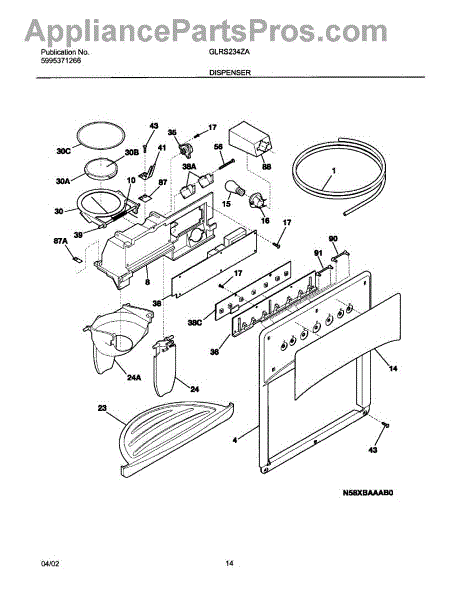 The Dispenser Lever is an OEM replacement part for Frigidaire refrigerators. This lever is a critical component of the refrigerator's water and ice dispenser system, located on the unit's exterior. It is designed to engage the dispenser when pressed, allowing for the seamless release of ice or water.