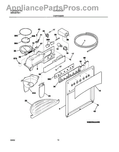 Parts for Frigidaire GLRS237ZAW3: 15 - Dispenser Parts