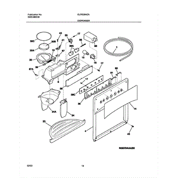 The Dispenser Lever is an OEM replacement part for Frigidaire refrigerators. This lever is a critical component of the refrigerator's water and ice dispenser system, located on the unit's exterior. It is designed to engage the dispenser when pressed, allowing for the seamless release of ice or water.