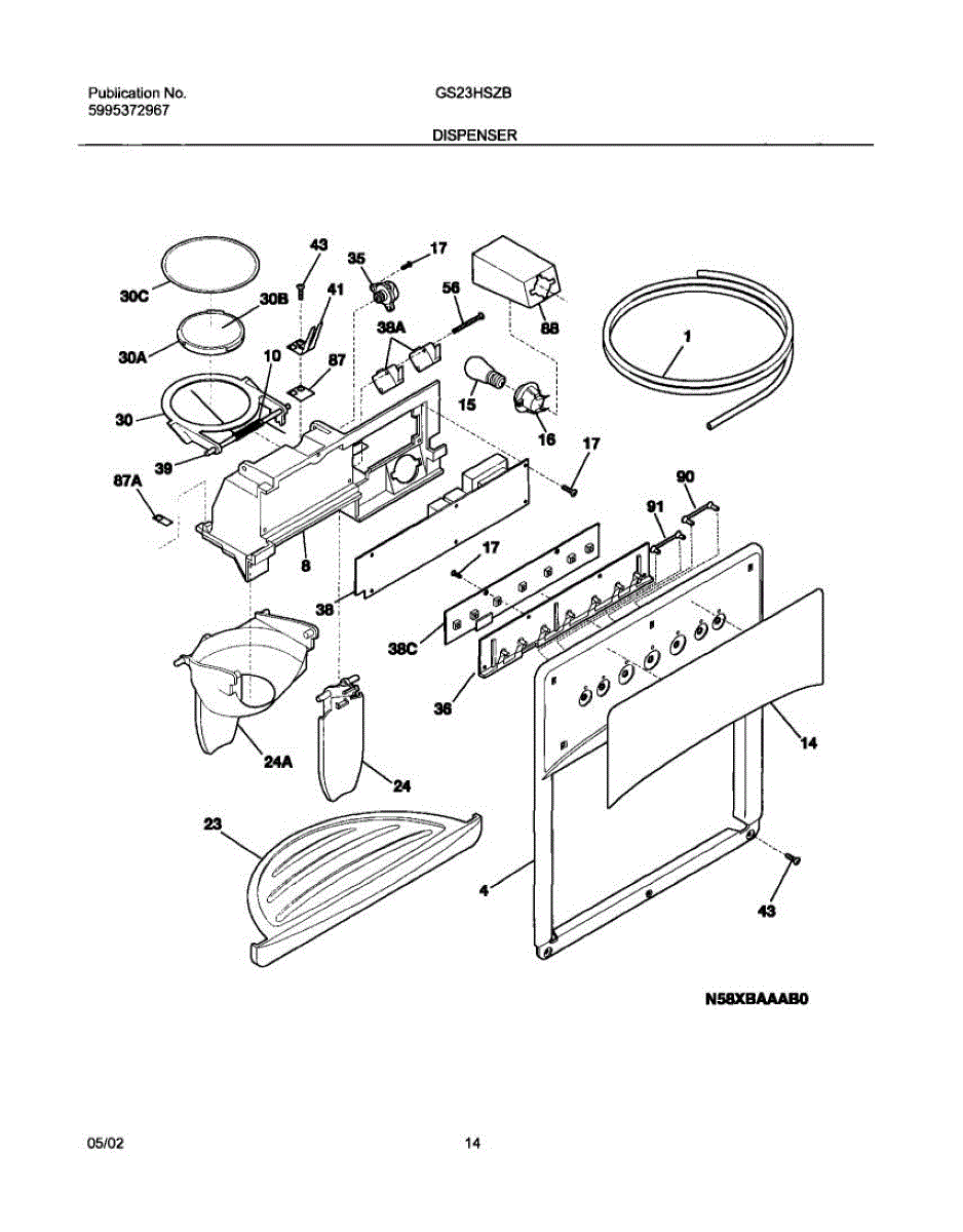 Parts for Frigidaire GS23HSZBW0: 15 - Dispenser Parts
